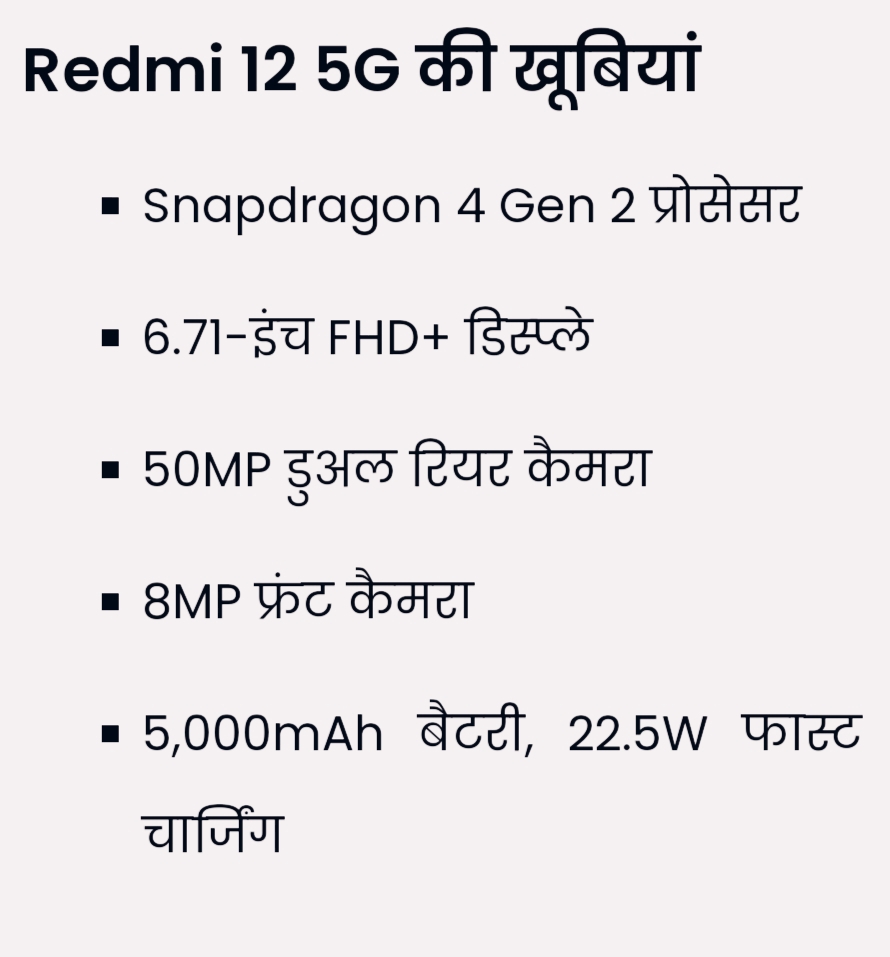 शाओमी कंपनी के आज के “रेडमी 12 सीरियल 5G रिवोल्यूशन इवेंट” में कंपनी ने यह दो स्मार्टफोन के साथ-साथ इस कंपनी की स्मार्ट वॉच और टीवी भी लॉन्च की है। बता दें कि 5G कनेक्टिविटी में यह फोन सभी के लिए अफॉर्डेबल होंगे।
