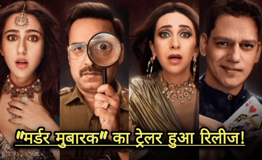 सोमवार को मेकर्स की तरफ से इस बात की जानकारी दी गई थी कि मंगलवार 5 मार्च को मर्डर मुबारक को ट्रेलर रिलीज किया जाएगा। निर्धारित समयानुसार इस ओटीटी फिल्म का ट्रेलर रिलीज कर दिया गया है, जिसे ओटीटी प्लेटफॉर्म नेटफ्लिक्स इंडिया ने अपने ऑफिशियल यूट्यूब चैनल पर लॉन्च किया है। इस ट्रेलर में एक्टर पंकज त्रिपाठी एसीपी भवानी सिंह के किरदार में एक मर्डर मिस्ट्री को सुलझाते नजर आ रहे हैं। खूनी के सस्पेक्ट के तौर पर उनके निशाने पर करिश्मा कपूर, सारा अली खान और विजय वर्मा जैसे कई कलाकार है।