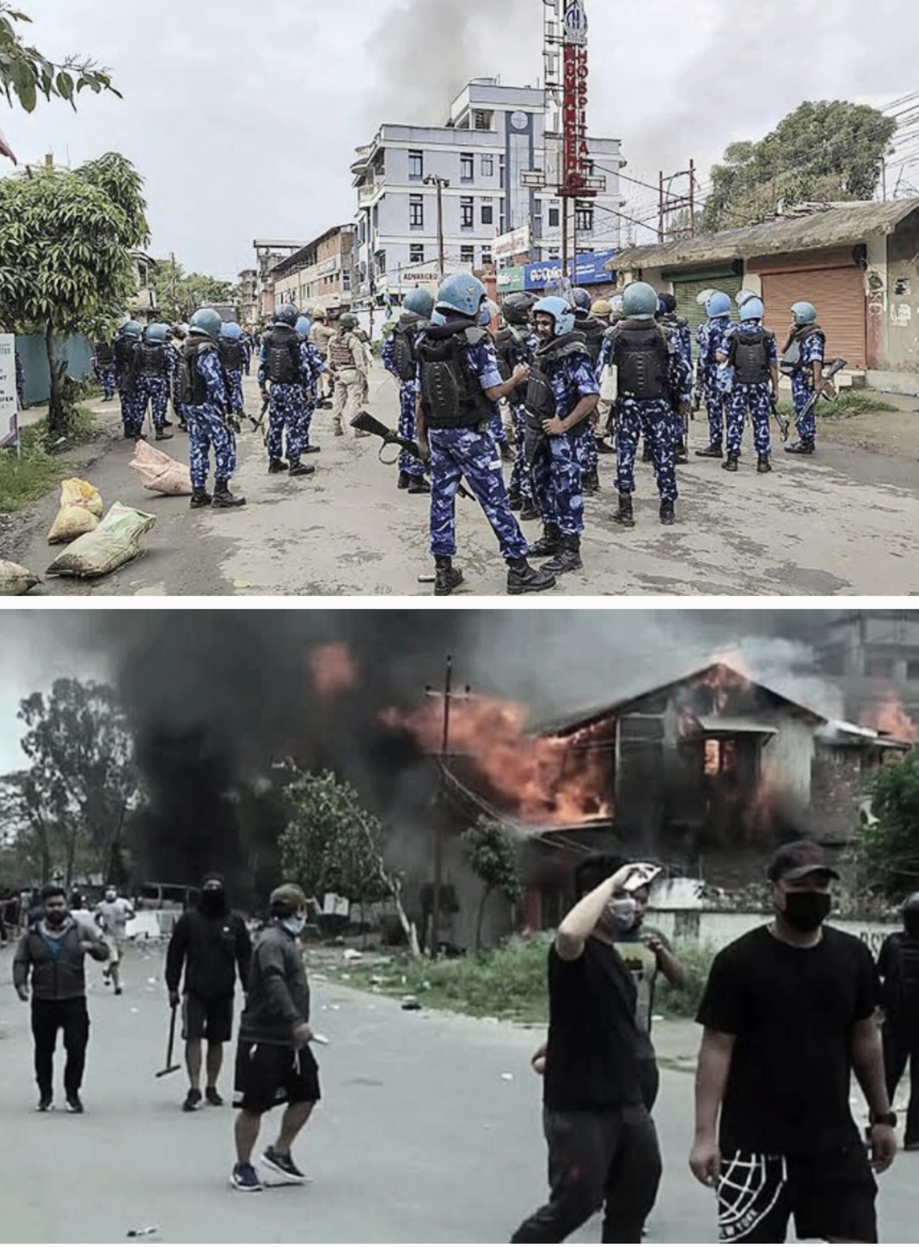 भीड़ ने एक चर्च और इंफाल और विष्णुपर में 100 से ज्यादा घरों को जला दिया। यारीपोक में रेडीमेड कपड़ों से भरे एक ट्रक को फूंक डाला। आगजनी की घटनाओं के मद्देनजर इंफाल में डबल लेयर सिक्योरिटी लगाई गई है इंफाल के बाहरी इलाकों में सीआरपीएफ और भीतरी इलाकों में पुलिस को तैनात किया गया है।