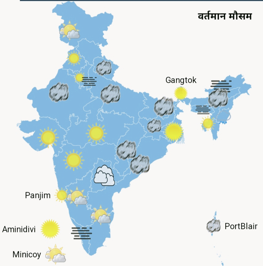देश के मौसम में अभी तक लगातार बदलाव देखा गया है। अप्रैल का महीना भी खत्म होने को है, अप्रैल में मौसम के दो अलग अलग रूप देखने को मिले थे। देश भर की मौसम प्रणाली की बात करें तो एक पश्चिमी विक्षोभ अपनी जगह पर बना हुआ है। तो वहीं मौसम विभाग ने 26 अप्रैल से एक ताजा पश्चिमी विक्षोभ पश्चिमी हिमालय क्षेत्र को प्रभावित करने की सम्भावना जताई है। एक चक्रवाती परिसंचरण निचले स्तर पर पूर्वोत्तर राजस्थान पर बना हुआ है। असम और आसपास के क्षेत्रों पर एक और चक्रवाती परिसंचरण बना है जो कभी भी अपना असर दिखा सकता है। वहीं उप-हिमालयी पश्चिम बंगाल और आसपास के क्षेत्र पर एक चक्रवाती परिसंचरण बना हुआ है। दक्षिणी आंतरिक कर्नाटक पर एक चक्रवाती हवाओं का क्षेत्र बना हुआ है। 24 घंटों के दौरान, असम और अरुणाचल प्रदेश में हल्की से मध्यम बारिश के साथ कुछ स्थानों पर भारी बारिश हो सकती है।