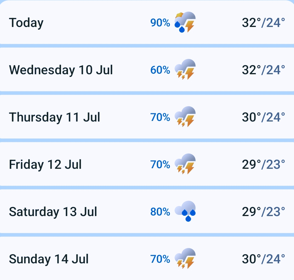 - अगर हम दूसरे हफ्ते प्रदेश में मौसम की बात करें तो बंगाल की खाड़ी में मानसून सिस्टम बना और मानसून की तरफ लाइन बनी रही तो तीन या चार दिन दिन अच्छी बारिश होने की संभावना है यानी जुलाई का दूसरा हफ्ता भी जो अच्छी बारिश के साथ गुजरेगा। लेकिन इस हफ़्ते की शुरुआत अच्छी नहीं हुई है और कुछ जिलों में 3 दिनों से बारिश दर्ज़ नहीं हुई।