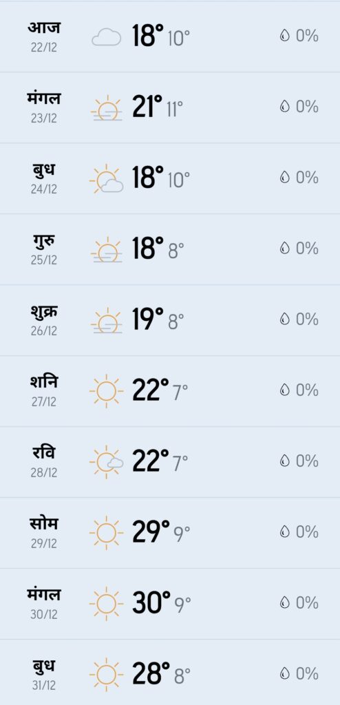 अगले 10 दिनों का मौसम पूर्वानुमान।